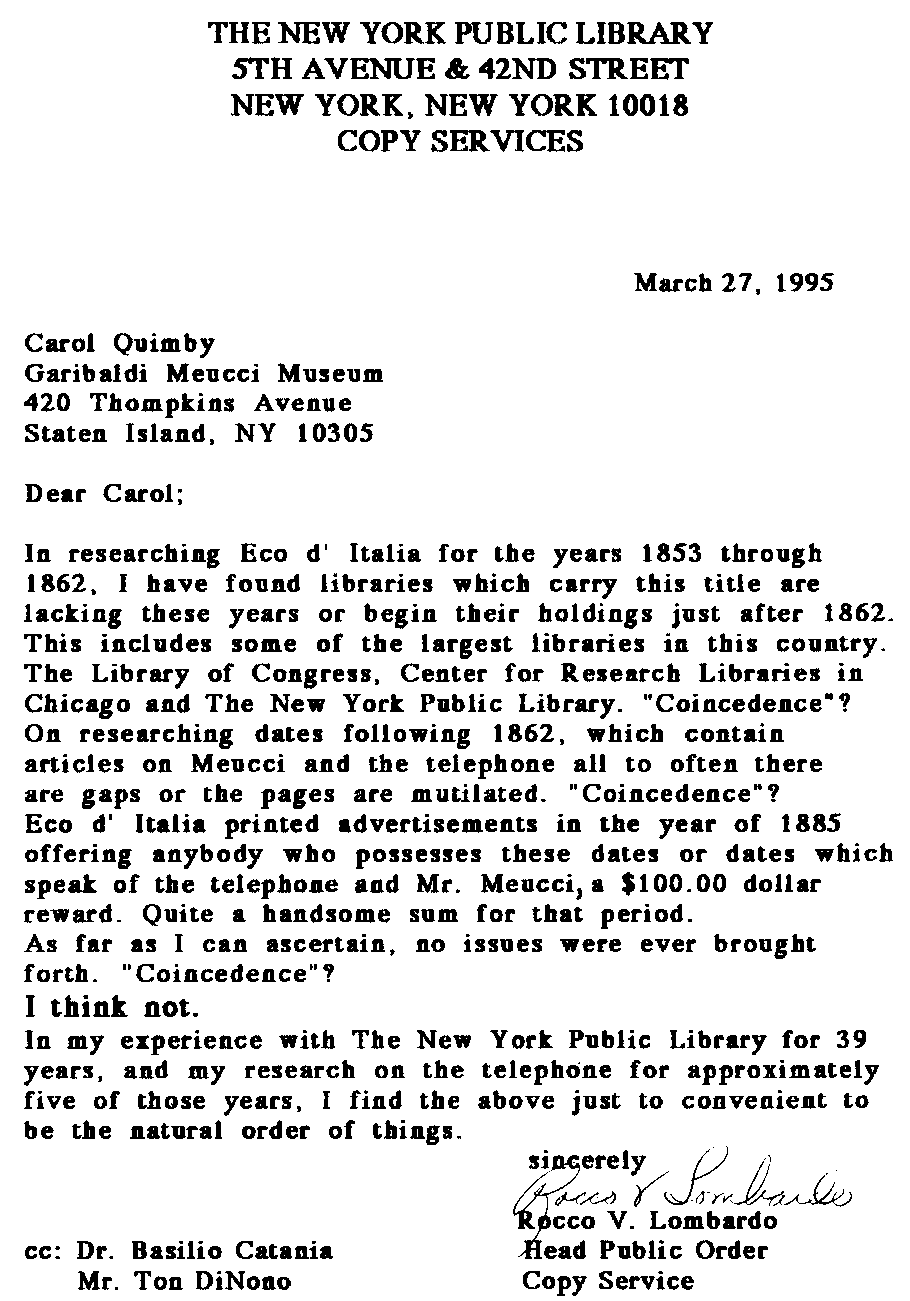 - Basilio Catania, "The U. S. Government Versus Alexander Graham Bell: An Important Acknowledgment for Antonio Meucci," Bulletin of Science, Technology & Society, Vol. 22, No. 6, December 2002, p. 426-442.